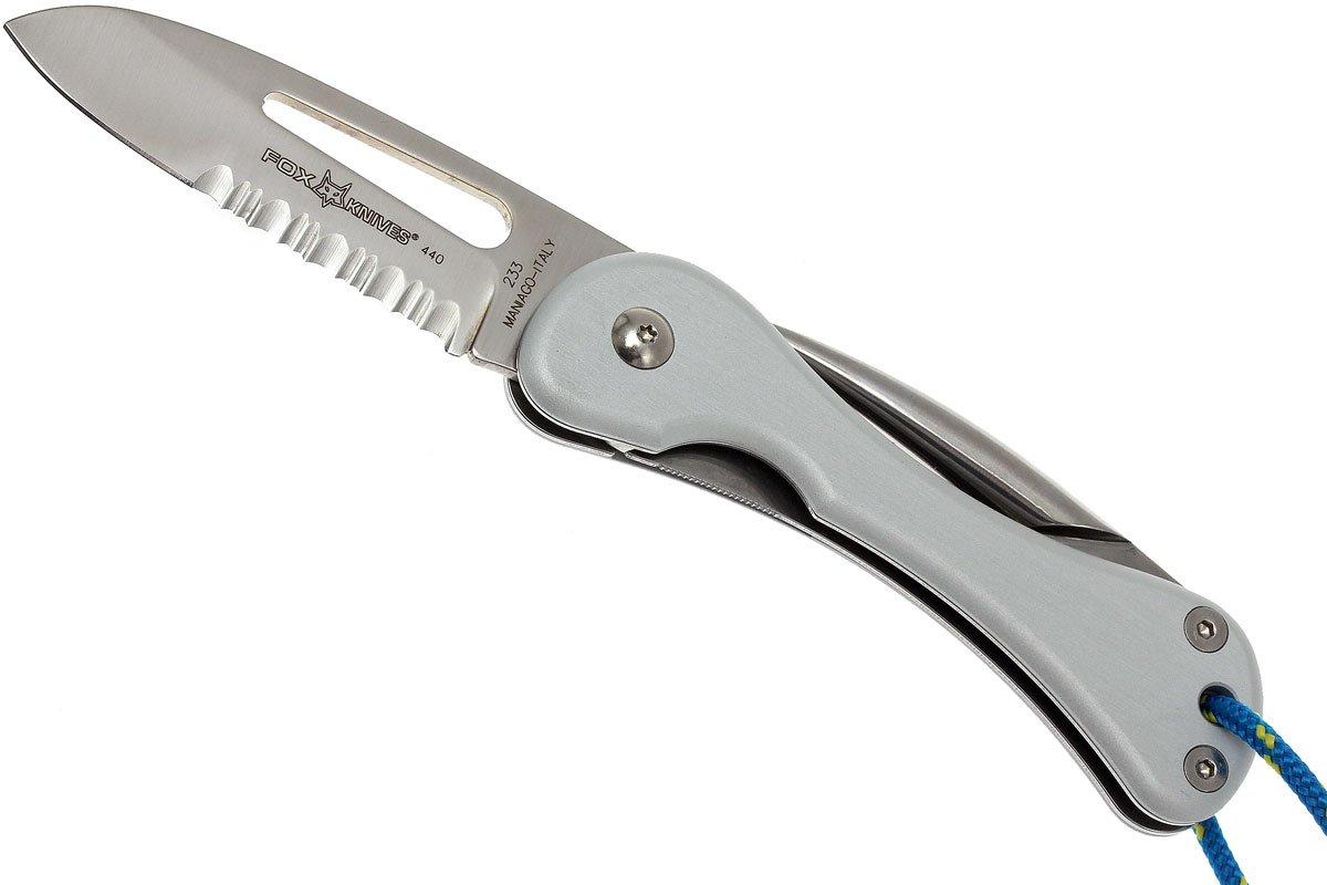 Fox 233A Sailing knife, silver aluminum Advantageously shopping at Fox Sailing Knife First class service and free shipping! a design shaped by the rough seas, the fox sailing knife is a purpose built folding knife for any nautical environment. The shape of the blade is designed to give the uppermost cutting power. A stout, liner locking 420c stainless. this knife is part of a series that embodies the craftsmanship excellence. Fox Sailing Knife.